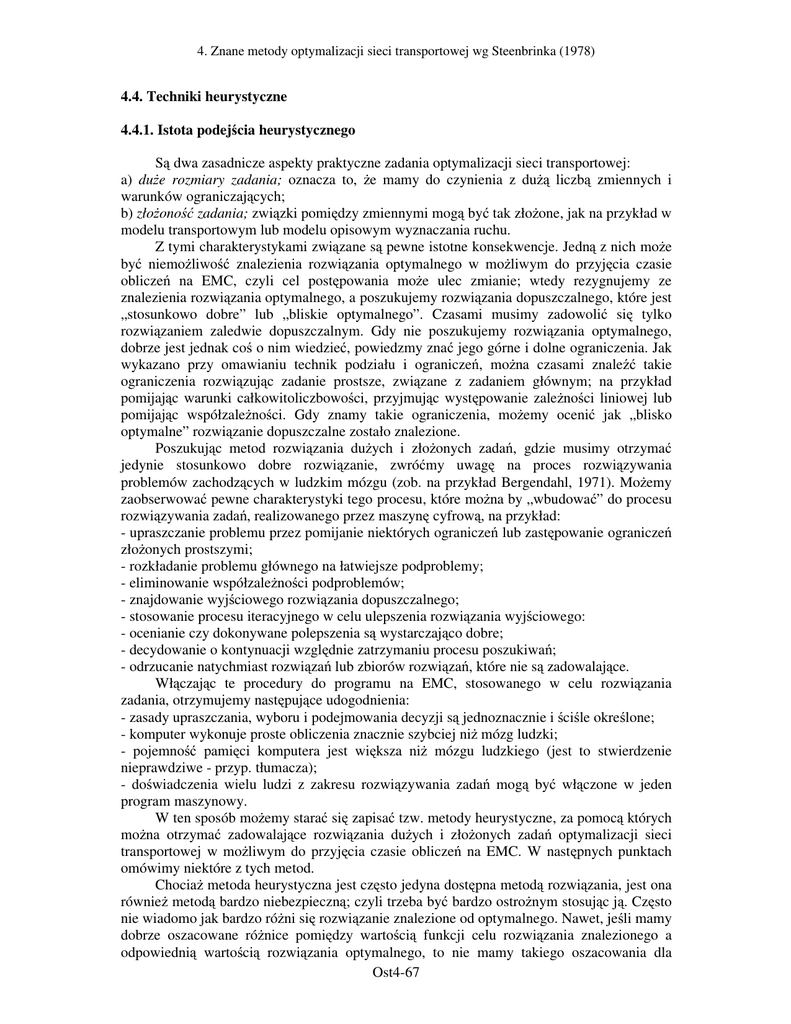 4. Znane metody optymalizacji sieci transportowej wg Steenbrinka (1978)