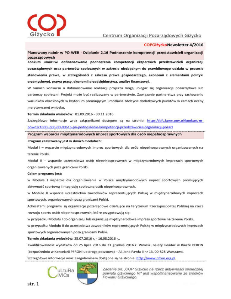 Centrum Organizacji Pozarządowych Giżycko str. 1