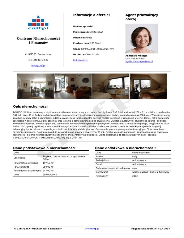 Agent prowadzący ofertę Opis nieruchomości Dane podstawowe o
