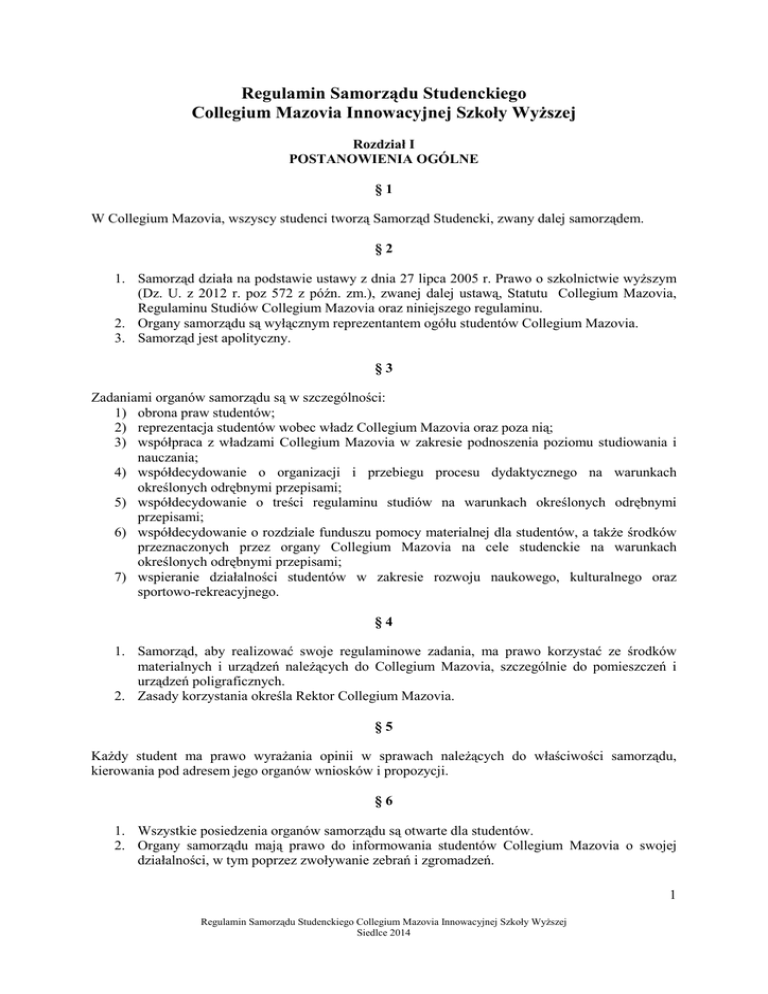 Regulamin Samorządu Studenckiego Collegium Mazovia