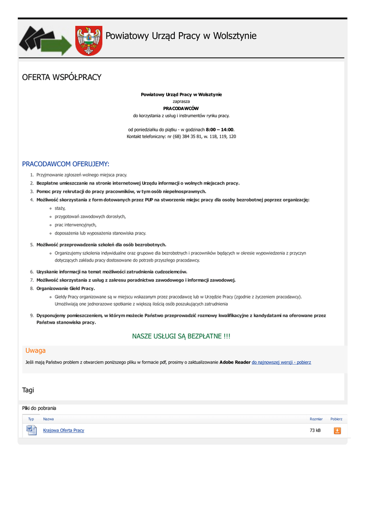 Oferta współpracy - Powiatowy Urząd Pracy w Wolsztynie