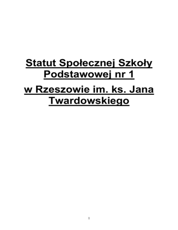 Statut Społecznej Szkoły Podstawowej nr 1 w Rzeszowie im. ks