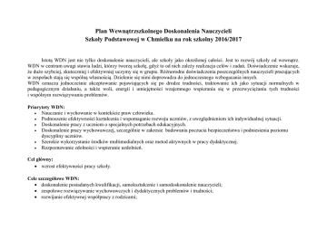 Plan Wewnątrzszkolnego Doskonalenia Nauczycieli Szkoły