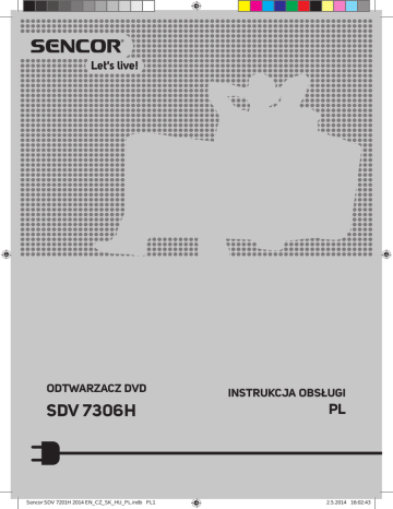ODTWARZACZ DVD SDV 7306H Sencor SDV 7201H 2014 EN_CZ_SK_HU_PL.indb PL1 INSTRUKCJA OBSŁUGI PL 2.5.2014 16:02:43 Sencor SDV 7201H 2014 EN_CZ_SK_HU_PL.indb PL2 2.5.2014 16:02:44 Spis treści PRZED URUCHOMIENIEM URZĄDZENIA NALEŻY UWAŻNIE PRZECZYTAĆ NINIEJSZĄ INSTRUKCJĘ. INSTRUKCJĘ NALEŻY ZACHOWAĆ DO WGLĄDU. ZANOTUJ NUMER MODELU I NUMER SERYJNY. DANE Z TABLICZKI ZNAMIONOWEJ NA TYLNEJ OBUDOWIE NALEŻY PRZEKAZAĆ SPRZEDAWCY NA WYPADEK KONIECZNOŚCI SKORZYSTANIA Z USŁUG SERWISOWYCH. PL Spis treści 1. Ważne warunki dot. bezpieczeństwa ..........................................................................................2 2. Opis odtwarzacza ............................................................................................................................. 7 2.1. Przedni panel ............................................................................................................................ 7 2.2. Tylny panel ............................................................................................................................... 7 3. Zdalne sterowanie............................................................................................................................8 4. Podłączenie odtwarzacza ............................................................................................................. 10 5. Ustawienia systemu ....................................................................................................................... 11 5.1. Menu DVD SETUP (Ustawienia DVD) .............................................................................. 11 5.2. MENU System setup (Ustawienia systemu) .................................................................. 12 5.3. Odtwarzanie plików MP3 ................................................................................................... 13 6. Usuwanie problemów ................................................................................................................... 14 7. Dane techniczne ............................................................................................................................. 15 PL 1 Copyright © 2014, Fast ČR, a. s. Sencor SDV 7201H 2014 EN_CZ_SK_HU_PL.indb 1 Revision 05/2014 2.5.2014 16:02:44 Ważne warunki dot. bezpieczeństwa 1. Ważne warunki dot. bezpieczeństwa Aby prawidłowo korzystać z urządzenia, należy dokładnie przeczytać niniejszą instrukcję obsługi i zachować ją do wglądu. PL Ogólne instrukcje dot. bezpieczeństwa • Instrukcję należy uważnie przeczytać. Należy zachować ją w bezpiecznym miejscu do wglądu w przyszłości. Jeżeli urządzenie jest sprzedawane lub przekazywane osobom trzecim, wraz z urządzeniem należy przekazać niniejszą instrukcję. • Stosuj się do zaleceń, zawartych w niniejszej instrukcji. • Przestrzegaj wszelkich ostrzeżeń. • Stosuj się do wszelkich zaleceń. • Stosuj tylko akcesoria, podane przez producenta. • Nie stawiaj na urządzeniu płonących przedmiotów, np. świecy. • Urządzenie przeznaczone jest do użytku w klimacie umiarkowanym. • Producent ani sprzedawca w żadnym wypadku nie odpowiadają za jakiekolwiek szkody pośrednie i bezpośrednie, powstałe na skutek nieprzestrzegania zaleceń dot. instalacji, ustawień, obsługi i czyszczenia urządzenia, zawartych w niniejszej instrukcji. • Urządzenie należy chronić przed wstrząsami, uderzeniami, wibracjami, wilgocią i kurzem. • Przed umożliwieniem dzieciom korzystania z urządzenia należy je zapoznać z zasadami bezpiecznej obsługi, w sposób odpowiedni do ich wieku. Instalacja, obsługa • Zainstaluj urządzenie zgodnie z instrukcją. • Pozostaw wokół urządzenia wolną przestrzeń, niezbędną do prawidłowej cyrkulacji powietrza. Umożliwi to odprowadzanie ciepła, powstającego w trakcie użytkowania. Zasłonięcie otworów wentylacyjnych obudowy może spowodować przegrzanie i uszkodzenie urządzenia. Wentylacja nie może być ograniczona przez zakrycie otworów, np. gazetami, obrusem, zasłonami itp. Należy przestrzegać zaleceń dot. instalacji, zawartych w instrukcji. • Urządzenia nie należy wystawiać na bezpośrednie oddziaływanie źródeł ciepła, takich jak grzejniki, wymienniki ciepła, piece lub inne urządzenia (w tym wzmacniaczy), wydzielające ciepło. Wysoka temperatura znacząco skraca żywotność elektronicznych części urządzenia. Nie należy używać urządzenia ani pozostawiać go w pobliżu otwartego ognia. • Urządzenie nie może zostać wystawione na działanie cieczy i nie należy na nim stawiać naczyń, napełnionych cieczą, np. wazonów. Należy chronić urządzenie przed kontaktem z wodą lub inną cieczą, nie należy instalować ani pozostawiać urządzenia na zewnątrz. Nie należy używać urządzenia na zewnątrz. Nieprzestrzeganie powyższych zaleceń powoduje ryzyko porażenia prądem elektrycznym lub wzniecenia pożaru. • Nie należy używać urządzenia w pobliżu wody. 2 PL Copyright © 2014, Fast ČR, a. s. Sencor SDV 7201H 2014 EN_CZ_SK_HU_PL.indb 2 Revision 05/2014 2.5.2014 16:02:44 Ważne warunki dot. bezpieczeństwa • • • • • • Nie należy omijać zabezpieczeń wtyczki biegunowej. Jeżeli wtyczki nie można podłączyć do gniazdka, należy zlecić wymianę przestarzałego gniazdka na nowszy typ. Przed podłączeniem urządzenia do gniazdka należy upewnić się, że napięcie w gniazdku odpowiada napięciu na tabliczce znamionowej urządzenia. Przewód zasilania nie może być narażony na deptanie, ściskanie, ani zginanie, zwłaszcza w pobliżu wtyczki, gniazdka oraz miejsca, w którym wychodzi z urządzenia. Wtyczka sieciowa służy do odłączania urządzenia i musi być łatwo dostępna. Przed odłączeniem kabla sieciowego od urządzenia po jego naładowaniu należy zawsze najpierw wyciągnąć wtyczkę z gniazda sieciowego. Odłącz urządzenie od sieci w trakcie burzy, lub jeżeli przez dłuższy nie jes