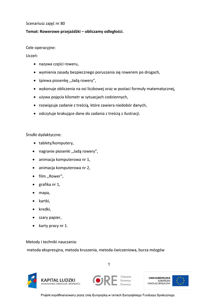 Scenariusz zajęd nr 80 Temat: Rowerowe przejażdżki – obliczamy