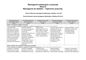 Wymagania edukacyjne z przyrody Klasa 4