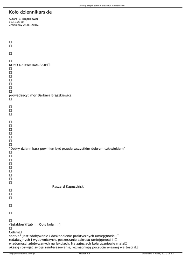 Koło dziennikarskie - Gminny Zespół Szkół w Bielanach Wrocławskich