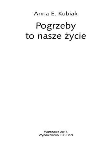 Spis treści Wprowadzenie ....................................................................... 9 Funeralne struktury 1. Historia zakładów pogrzebowych w Europie i USA ...... Wstęp ............................................................................. Separacja żałobników ...................................................... Profesjonalizacja .............................................................. Standaryzacja i demokratyzacja usług pogrzebowych ....... Biurokratyzacja ............................................................... Medykalizacja ................................................................. Duch purytanizmu ......................................................... 2. Historia polskich zakładów pogrzebowych ................... Z pokolenia na pokolenie ............................................... Droga zawodowa po II wojnie światowej ........................ W okresie PRL-u ............................................................ Lata dziewięćdziesiąte – czas wolnego rynku ................... Profesjonalizacja .............................................................. 3. Branża funeralna w Polsce ............................................ Organizacje branżowe ..................................................... Profesjonalizacja .............................................................. Trudności branży pogrzebowej ........................................ Charakterystyka socjo-demograficzna ............................. Specyfika zawodu przedsiębiorcy funeralnego ................. 4. Teatrum funeralne ........................................................ Lokalizacja – obecność w przestrzeni publicznej ............... Przestrzeń symboliczna ................................................... Aktorzy ........................................................................... Występ ........................................................................... ‘Momenty krytyczne’ ...................................................... 23 23 25 26 28 29 30 32 34 35 38 39 45 47 56 56 59 60 63 65 74 74 78 84 86 87 Kultura pochówku 5. Kultura pochówku w Polsce ......................................... 6. Rola Kościoła katolickiego ........................................... 7. Scenariusz obrzędu przejścia ........................................ Rytuał przejścia ............................................................... Przygotowanie scenariusza pochówku .............................. W zakładzie pogrzebowym .............................................. Artefakty ......................................................................... 97 118 130 130 132 135 141 Spis treści 8. Humanizacja trupa – przywracanie symbolicznego porządku .......................................................................... Transgresja zwłok w demortuus ........................................ Zabiegi morticiens ............................................................ Balsamacja ....................................................................... 148 148 152 158 Rodzaje pogrzebów 9. Pogrzeb tradycyjny ........................................................ 10. Kremacja, jej scenariusze i orędownicy ...................... Kremacja na świecie ........................................................ Kremacja w Polsce .......................................................... Orędownicy kremacji ...................................................... Scenariusze pogrzebu kremacyjnego ................................ 11. Pogrzeb świecki .......................................................... 12. Inne pogrzeby ............................................................ Pogrzeby ‘smoleńskie’ ...................................................... Drugie życie trupa .......................................................... Reinwencja tradycji ......................................................... Nowi zmarli .................................................................... Pogrzeby motocyklistów ................................................. Pogrzeby pupili ............................................................... 177 194 194 196 201 204 221 240 241 244 245 247 250 252 Funeraria za kulisami 13. Nekrobiznes ............................................................... Opowieści o ‘łowcach skór’ .............................................. Niebezpieczne związki rynku funeralnego z medycyną .... 14. Homo ludens funeralnego spektaklu ............................ Eros i Tanatos ................................................................. Funeralne widowisko ...................................................... 257 259 266 277 278 281 Perspektywy przemian pogrzebów w XXI wieku Zakończenie ......................................................................... Bibliografia ........................................................................... Aneks ................................................................................... Charakterystyka socjo-demograficzna ważniejszych dla branży pogrzebowej badanych ................................... Lista krematoriów w Polsce ............................................. Regionalizacja pochówków .............................................. List Episkopatu Polski w sprawie kremacji ....................... Indeks nazwisk ....................................................................... 6 305 315 321 321 322 323 343 349