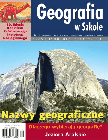 10. Edycja Konkursu Państwowego Instytutu Geologicznego Geografia w Szkole Nr 1 STYCZEŃ/LUTY 2010 CZASOPISMO 318 (LXIII) DLA indeks 359149 CENA 16,50 ZŁ (VAT 0%) NAUCZYCIELI Nazwy geograficzne 82080301002001 Dlaczego wybierają geografię? Jeziora Aralskie Geografia NUMER 1 STYCZEŃ/LUTY 2010 Czasopisma Pedagogiczne w Szkole 319 (LXIII) indeks 359149 Nakład 3500 egz. CENA zł 16,50 (VAT 0%) Redakcja Aleksandra Konczewska (sekretarz redakcji) [email protected] oraz [email protected] Adres redakcji 01–194 Warszawa, ul. Młynarska 8/12, tel. 022 244 84 73, faks 022 244 84 76 [email protected] Wydawca Dr Josef Raabe Spółka Wydawnicza Sp. z o.o. ul. Młynarska 8/12, 01–194 Warszawa tel. 0-22 244 84 00, faks 0-22 244 84 20 e-mail: [email protected] www.raabe.com.pl NIP: 526-13-49-514 REGON: 011864960 Zarejestrowana w Sądzie Rejonowym dla m.st. Warszawy w Warszawie XII Wydział Gospodarczy KRS KRS 0000118704 Wysokość Kapitału Zakładowego: 50.000 PLN Prezes zarządu Michał Włodarczyk CZASOPISMO DLA NAUCZYCIELI Spis treści DYDAKTYKA 5 Jak lepiej kształcić geograficzne pojęcia? n Julian Piotr Sławiński SCENARIUSZ LEKCJI 12 Skład i budowa atmosfery. Konspekt lekcji w I klasie liceum n Agnieszka Kłos 16 Podział ziemi na półkulę wschodnią i zachodnią. Długość geograficzna. Konspekt lekcji w klasie I gimnazjum n Agnieszka Kłos METODY NAUCZANIA 19 Niekonwencjonalne sposoby nauczania geografii n Roman Grzyb GEOGRAFICZNE POCHODZENIE NAZW 23 Liczebniki w nazewnictwie geograficznym n Jerzy Wrona LEKCJA W TERENIE Dyrektor wydawniczy Józef Szewczyk, tel. tel. 022 244 84 70, [email protected] 36 Poznawać inaczej n Maria Figa Dział obsługi klienta tel. 022 244 84 11, [email protected] 41 Edukacja w Finlandii – spojrzenie z bliska n Maria Figa Dyrektor marketingu Anna Gryczewska [email protected] 48 Motywy wyboru geografii jako kierunku studiów Kolportaż Anna Niepiekło, tel. 022 244 84 78, faks 022 244 84 79 [email protected] Reklama Andrzej Idziak tel. 022 244 84 77, faks 022 244 84 76, kom. 0 692 277 761 [email protected] Skład i łamanie Vega design Druk i oprawa Pabianickie Zakłady Graficzne SA, 95–200 Pabianice, ul. P. Skargi 40/42 Redakcja nie zwraca nadesłanych materiałów, zastrzega sobie prawo formalnych zmian w treści artykułów i nie odpowiada za treść płatnych reklam. SYSTEM EDUKACJI STUDIA GEOGRAFICZNE n Agnieszka Kłos STUDIUM PRZYPADKU 51 Jeziora Aralskie n Aleksandra Zaparucha WIEŚCI Z POLSKI I ZE ŚWIATA 60 Świat – panorama n Jan Kądziołka (wybór i opracowanie) Zdjęcia na okładce 1) zdjęcie duże: Park Narodowy Yosemite, Kalifornia. Skała Half Dome (fot. Maurizio Gambarini/PAP); Half Dome, czyli półkopuła – jest znakiem firmowym parku. O wielu ciekawych nawiązaniach w nazwach geograficznych w artykule Jerzego Wrony na s. 23. 2) górne zdjęcie: Praca Weroniki Niżałowskiej zdobywczyni III miejsca w finale ogólnopolskiego konkursu geologiczno-środowiskowego pt. Nasza Ziemia – środowisko przyrodnicze wczoraj, dziś i jutro zorganizowanego przez Państwowy Instytut Geologiczny w 2009 r.; o historii konkursu, jego charakterystyce piszą: Monika Krzeczyńska i Agata Olszyńska na s. 34. Zapraszamy do odwiedzenia naszej strony w Internecie www.edupress.pl od redakcji Drodzy Czytelnicy Oddajemy Państwu pierwszy w nowym roku numer „Geografii w Szkole”. Czytelnicy znajdą tu teksty o różnorodnej tematyce, liczne konspekty lekcji oraz informacje o aktualnych wydarzeniach w Polsce i na świecie. Ciekawym tematem zajęła się P. Agnieszka Kłos, studentka geografii z Krakowa. Przeprowadziła ankietę wśród studentów na Uniwersytecie Pedagogicznym na temat powodów decyzji o studiowaniu geografii. Zauważyć można zmianę w podejściu studentów do wyboru tego kierunku. Pocieszające jest, że nadal większość przyznaje, że zdecydowali się na geografię ze względu na zainteresowanie tą dziedziną nauki. Zmienia się natomiast podejście młodych geografów w przyszłym planowaniu własnego rozwoju zawodowego. Zmniejsza się ilość studentów, którzy deklarują chęć zostania nauczycielem. Jest to dość zrozumiałe. Młodzi ludzie traktują studia geograficzne jako szansa na wyspecjalizowanie się w programach informatycznych i wąskich specjalizacjach, które gwarantują wyższe zarobki i łatwość w znalezieniu pracy. Równie ciekawe aspekty opisuje P. Roman Grzyb. Przekonuje, że przy niewielkim wysiłku i pomysłowości można uatrakcyjnić lekcję geografii. Nie zawsze treść, ale forma! Pamiętajmy o tym i starajmy się poszukiwać takich rozwiązań dydaktycznych, które zainteresują i pomogą uczniom w zrozumieniu trudniejszych zagadnień. Interesującą tematykę przedstawia nam P. Jerzy Wrona w swoim artykule o liczebnikach. Jest to nie tylko przegląd najciekawszych nazw geograficznych często mało znanych, ale również barwne wyjaśnienie skąd owe nazwy pochodzą. Zachęcamy do zapoznania się z warunkami udziału w konkursie organizowanym już po raz 10. przez Państwowy Instytut Geologiczny. Artykuł podsumowujący historię konkursu znajdą Państwo w numerze, a wszelkie informacje o zbliżającej się edycji na stronach internetowych Instytutu. Poza tym proponujemy wiele innych, ciekawych tematów: P. J. P. Sławińskiego o jakże ważnym kształceniu pojęć, odpowiedzialności za język ojczysty; P. M. Figi o systemie edukacji w Finlandii oraz specjalne opracowanie na temat Jeziora Aralskiego prosto z Taszkentu autorstwa P. A. Zaparuchy. Życzymy miłej lektury Redakcja O 4 geografia w szkole