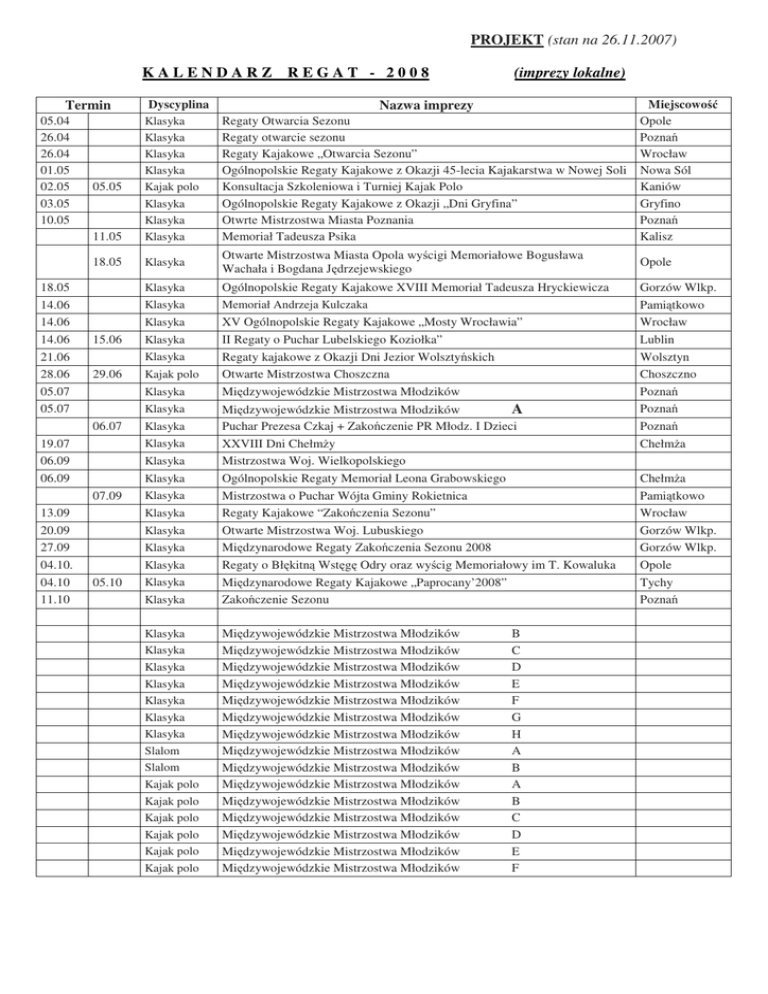 PROJEKT (stan na 26.11.2007) K A L E N D A R Z R E G A T