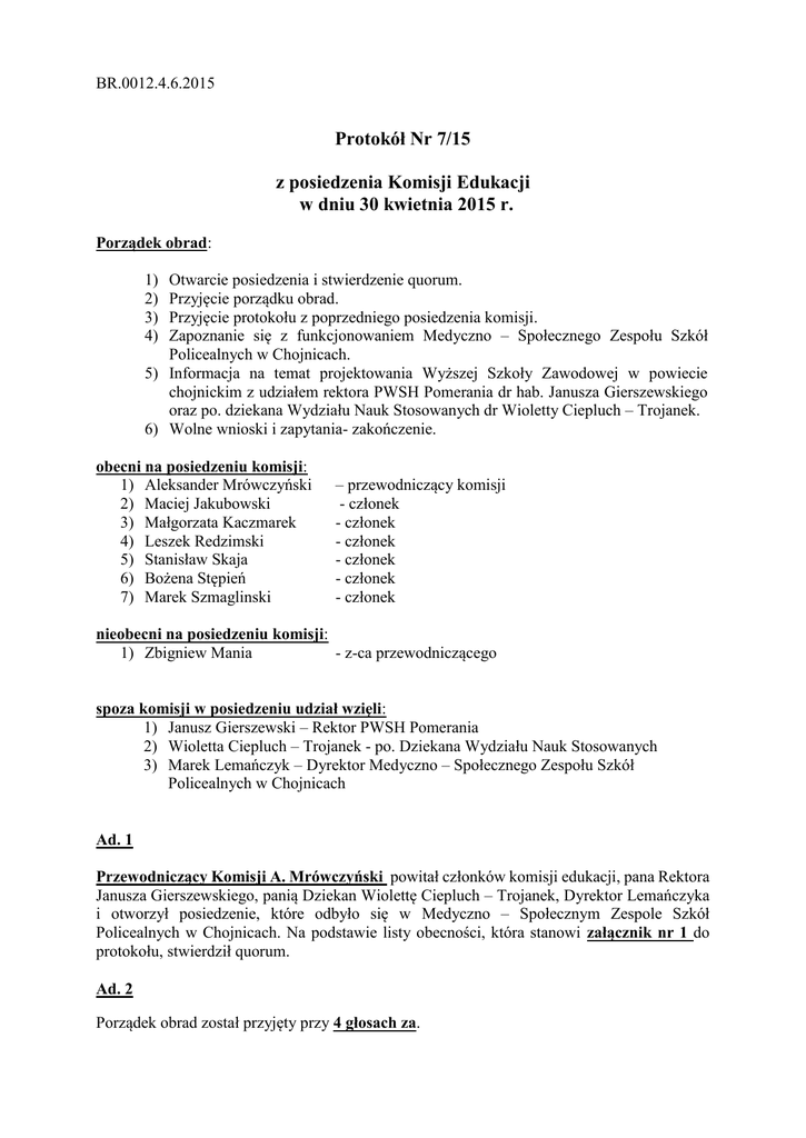 Protokół nr 7/15 - 30 kwietnia 2015 r.