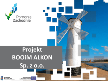 Projekt BOOiM ALKON Sp. z o.o. www.wzp.pl Projekt BOOiM ALKON Sp. z o.o. Inwestor: Biuro Ochrony Osób i Mienia ALKON Sp. z o. o. Tytuł projektu: Rewitalizacja terenów postoczniowych w Szczecinie poprzez budowę budynku o funkcji biurowo-usługowo-handlowej Całkowity koszt inwestycji: 9 253 tys. PLN Kwota pożyczki z Inicjatywy JESSICA: 5 634 tys. PLN Data podpisania umowy: 30 października 2013 r. www.wzp.pl Projekt BOOiM ALKON Sp. z o.o. Rewitalizacja terenów postoczniowych w Szczecinie poprzez budowę budynku o funkcji biurowousługowo-handlowej -STAN OBECNYLokalizacja projektu: Miejscowość – Szczecin Dzielnica- śródmieście Osiedle- Drzetowo-Grabowo Ulica- Teofila Firlika 41 • • • działka zabudowana trzema budynkami: dwa budynki usługowo-biurowe kotłownia, zabudowa parterowa z początku lat 70, znaczny stopień zdekapitalizowania degradacji istniejących budynków i www.wzp.pl Projekt BOOiM ALKON Sp. z o.o. Stan docelowy • • • • • • wykonanie prac rewitalizacyjnych (rozbiórek i budów),w tym: prace przygotowawcze, demontaż i rozbiórka trzech istniejących budynków, doprowadzenie przyłączy oraz instalacji zewnętrznych, budowa czterokondygnacyjnego budynku, Budowa parkingu powierzchnia budynku biurowo – usługowo – handlowego: 2 139 m2, wynajem powierzchni, dostosowanie budynku dla potrzeb osób niepełnosprawnych, zachowanie ciągłości charakteru i wyglądu elewacji zewnętrznych z sąsiadującymi budynkami (m.in. Zabytkowym budynkiem Komendy Wojewódzkiej Państwowej Straży Pożarnej), uporządkowanie terenów zielonych wokół inwestycji. Rewitalizacja terenów postoczniowych w Szczecinie poprzez budowę budynku o funkcji biurowousługowo-handlowej -WIZUALIZACJA- www.wzp.pl Projekt BOOiM ALKON Sp. z o.o. Rewitalizacja terenów postoczniowych w Szczecinie poprzez budowę budynku o funkcji biurowousługowo-handlowej -WIZUALIZACJA- Stan docelowy • • • • • • utworzenie w nowopowstałym budynku spółdzielni socjalnej zajmującej się szkoleniami i pomocą w zatrudnianiu osób wykluczonych społecznie organizacja min. 3 szkoleń rocznie , bezpłatne udostępnianie sal konferencyjnych dla organizacji wspierających osoby niepełnosprawne, restrukturyzacja terenów poprzemysłowych i obszarów powiązanych, 8 nowych miejsc pracy, zmiana wizerunku obszaru Drzetowo, zmniejszenie, w sposób bezpośredni, zjawiska przestępczości na rewitalizowanym obszarze monitoring zewnętrznej części nieruchomości, fizyczna ochrona budynku www.wzp.pl