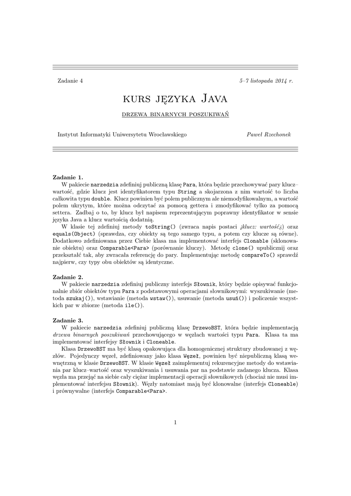 kurs języka Java - Instytut Informatyki Uniwersytetu Wrocławskiego