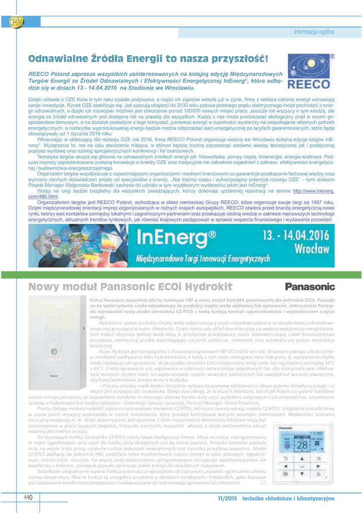 i macje ogólne Odnawialne Źródła Energii to nasza przyszłość! 7DUJyZ(QHUJLL]HħUyGHá2GQDZLDOQ\FKL(IHNW\ZQRĞFL(QHUJHW\F]QHM,Q(QHUJ®NWyUDRGEĊG]LHVLĊZGQLDFKQD6WDGLRQLHZH:URFáDZLX ']LĊNLXVWDZLHR2=(NWyUDZW\PURNX]RVWDáDSRGSLVDQDDF]ĊĞüLFK]DSLVyZZHV]áDMXĪZĪ\FLH¿UP\]VHNWRUD]LHORQHMHQHUJLLZ]QDZLDMą VZRMHLQZHVW\FMH5\QHN2=(VWDELOL]XMHVLĊ-DNV]DFXMąHNVSHUFLGRURNXSRáRZDSROVNLHJRSUąGXHOHNWU\F]QHJRPRĪHSRFKRG]Lü]HQHU JLLRGQDZLDOQ\FKDG]LĊNLLFKUR]ZRMRZLPRĪOLZHMHVWVWZRU]HQLHSRQDGQRZ\FKPLHMVFSUDF\-HV]F]HQLHZV]\VF\RW\PZLHG]ąDOH HQHUJLD]HĨUyGHáRGQDZLDOQ\FKMHVWGRVWĊSQDWDNQDSUDZGĊGODZV]\VWNLFK.DĪG\]QDVPRĪHSURGXNRZDüHNRORJLF]Q\SUąGZVZRLPJR VSRGDUVWZLHGRPRZ\PDQDGRGDWHNSRGZyMQLH]WHJRNRU]\VWDüSRQLHZDĪHQHUJLLZ]XSHáQRĞFLZ\VWDUF]\QD]DVSRNDMDQLHZáDVQ\FKSRWU]HE HQHUJHW\F]Q\FKDQDGZ\ĪNĊZ\SURGXNRZDQHMHQHUJLLEĊG]LHPRĪQDRGVSU]HGDüVLHFLHQHUJHW\F]QHMSRWDU\IDFKJZDUDQWRZDQ\FKNWyUHEĊGą RERZLą]\ZDá\RGVW\F]QLDURNX :NUDF]DMąFZRELHFXMąF\GODUR]ZRMX2=(URN¿UPD5((&23RODQGRUJDQL]XMHZLRVQąZH:URFáDZLXNROHMQąHG\FMHWDUJyZ,Q( QHUJ® :\GDU]HQLH WR PD QD FHOX VWZRU]HQLH PLHMVFD Z NWyU\P EĊG]LH PRĪQD ]DF]HUSQąü ]DUyZQR ZLHG]\ WHRUHW\F]QHM MDN L SUDNW\F]QHM SRSU]H]Z\VWDZĊRUD]V]HUHJVSHFMDOLVW\F]Q\FKNRQIHUHQFMLLIRUEUDQĪRZ\FK 7HPDW\NDWDUJyZVNXSLDVLĊJáyZQLHQDRGQDZLDOQ\FKĨUyGáDFKHQHUJLLMDNIRWRZROWDLNDSRPS\FLHSáDELRHQHUJLDHQHUJLDZLDWURZD3RG F]DVLPSUH]\]DSUH]HQWRZDQH]RVWDQąLQQRZDFMHZEUDQĪ\2=(RUD]WUDG\F\MQLHQLH]DEUDNQLH]DJDGQLHĔ]]DNUHVXHIHNW\ZQRĞFLHQHUJHW\F] QHMLEXGRZQLFWZDHQHUJRRV]F]ĊGQHJR 2UJDQL]DWRUWDUJyZZVSyáSUDFXMH]QDMZDĪQLHMV]\PLRUJDQL]DFMDPLLPHGLDPLEUDQĪRZ\PLFRJZDUDQWXMHSU]HND]DQLHIDFKRZHMZLHG]\RUD] Z\PLDQ\FHQQ\FKGRĞZLDGF]HĔSURVWRRGVSHFMDOLVWyZ]EUDQĪ\1LHWUDüP\F]DVXLZ\NRU]\VWDMP\SRWHQFMDáUR]ZRMX2=(´±W\PLVáRZDPL 3URMHNW0DQDJHU0DáJRU]DWD%DUWNRZVNL]DFKĊFDGRXG]LDáXZW\PZ\MąWNRZ\PZ\GDU]HQLXMDNLPMHVW,Q(QHUJ® :VWĊS QD WDUJL EĊG]LH EH]SáDWQ\ GOD ZV]\VWNLFK ]ZLHG]DMąF\FK NWyU]\ GRNRQDMą XSU]HGQLHM UHMHVWUDFML QD VWURQLH KWWSZZZLQHQHUJ FRPKWPO 2UJDQL]DWRUHPWDUJyZMHVW5((&23RODQGZFKRG]ąFDZVNáDGQLHPLHFNLHM*UXS\5((&2NWyUDRUJDQL]XMHVZRMHWDUJLRGURNX ']LĊNLPLĊG]\QDURGRZHMRULHQWDFMLLPSUH]RUJDQL]RZDQ\FKZUyĪQ\FKNUDMDFKHXURSHMVNLFK5((&2RWZLHUDSU]HGEUDQĪąHQHUJHW\F]QąQRZH U\QNLWZRU]\VLHüNRQWDNWyZSRPLĊG]\ORNDOQ\PLL]DJUDQLF]Q\PLSDUWQHUDPLRUD]SU]HND]XMHLVWRWQąZLHG]ĊZ]DNUHVLHQDMQRZV]\FKWHFKQRORJLL HQHUJHW\F]Q\FKDNWXDOQ\FKWUHQGyZU\QNRZ\FKMDNUyZQLHĪNUDMRZ\FKSRVWĊSRZDĔZVSUDZLHZVSDUFLD¿QDQVRZHJRLZ\GDZDQLDSR]ZROHĔ Nowy moduł Panasonic ECOi Hydrokit !"#$ %$&$'(&!) *+*,-.&!.$ (/-"01 "(+2!3+$5 67 (ŶŽǁLJŵŽĚƵų,LJĚƌŽŬŝƚƉƌnjĞnjŶĂĐnjŽŶLJĚůĂũĞĚŶŽƐƚĞŬKŝ͘WŽnjǁĂůĂ ŽŶŶĂǁLJŬŽƌnjLJƐƚĂŶŝĞĐŝĞƉųĂŽĚƉĂĚŽǁĞŐŽĚŽƉƌŽĚƵŬĐũŝĐŝĞƉųĞũǁŽĚLJƵǏLJƚŬŽǁĞũůƵďŽŐƌnjĞǁĂŶŝĂ͘:ĞĚŶŽĐnjĞƑŶŝĞWĂŶĂƐŽŶŝĐǁƉƌŽǁĂĚnjŝųŶŽǁLJŵŽĚĞůƐƚĞƌŽǁŶŝŬĂͲZdϱnjŶŽǁČĨƵŶŬĐũČŬŽŶƚƌŽůŝnjĂƉŽƚƌnjĞďŽǁĂŶŝĂŝǁLJƑǁŝĞƚůĂŶŝĞŵnjƵǏLJĐŝĂ ĞŶĞƌŐŝŝ͘ ,LJĚƌŽŬŝƚƚŽƐLJƐƚĞŵƉƌŽĚƵŬĐũŝĐŝĞƉųĞũǁŽĚLJǁLJŬŽƌnjLJƐƚƵũČĐLJĐŝĞƉųŽŽĚƉĂĚŽǁĞƉŽďƌĂŶĞnjĞƐƚĂŶĚĂƌĚŽǁĞũũĞĚŶŽƐƚŬŝǁĞǁŶħƚƌnjŶĞũƉƌĂĐƵũČĐĞũǁƚƌLJďŝĞĐŚųŽĚnjĞŶŝĂ͘njŝħŬŝŶŝĞŵƵĐĂųLJƵŬųĂĚĐŚĂƌĂŬƚĞƌLJnjƵũĞƐŝħǁŝħŬƐnjČǁLJĚĂũŶŽƑĐŝČĞŶĞƌŐĞƚLJĐnjŶČ͘ ^ĂŵŵŽĚƵųŽďĞũŵƵũĞƉŽŵƉħǁŽĚLJŬůĂƐLJ͕ƉƌnjĞųČĐnjŶŝŬƉƌnjĞƉųLJǁŽǁLJ͕njĂǁſƌŽĚƉŽǁŝĞƚƌnjĂũČĐLJ͕njĂǁſƌďĞnjƉŝĞĐnjĞŷƐƚǁĂ ƉƌnjĞƉųLJǁƵ͕ ĞůĞŬƚƌLJĐnjŶČ ŐƌnjĂųŬħ ǁƐƉŽŵĂŐĂũČĐČ ŶĂĐnjLJŶŝĞ ǁnjďŝŽƌĐnjĞ͕ ŵĂŶŽŵĞƚƌ ŽƌĂnj ĂƵƚŽŵĂƚLJĐnjŶLJ ƉƌŽĐĞƐ ĚĞnjLJŶĨĞŬĐũŝ ƚĞƌŵŝĐnjŶĞũ͘ EŽǁLJ,LJĚƌŽŬŝƚũĞƐƚŬŽŵƉĂƚLJďŝůŶLJnjϯͲƌƵƌŽǁLJŵŝƐLJƐƚĞŵĂŵŝsZ&KŝD&ϮƐĞƌŝŝϲE͘tƌĂŵĂĐŚũĞĚŶĞŐŽƵŬųĂĚƵŝƐƚŶŝĞũĞŵŽǏůŝǁŽƑđƉŽĚųČĐnjĞŶŝĂŬŝůŬƵŚLJĚƌŽŵŽĚƵųſǁ͕ĂŬĂǏĚLJnjŶŝĐŚŵŽǏĞŽďƐųƵŐŝǁĂđŝŶŶLJƚƌLJďƉƌĂĐLJ͕ƚũ͘ǁLJƚǁĂƌnjĂŶŝĞĐŝĞƉųĞũ ǁŽĚLJƵǏLJƚŬŽǁĞũůƵďŽŐƌnjĞǁĂŶŝĞ͘tƉƌnjLJƉĂĚŬƵnjďŝŽƌŶŝŬĂthƚĞŵƉĞƌĂƚƵƌĂǁŽĚLJŵŽǏĞďLJđƌĞŐƵůŽǁĂŶĂƉŽŵŝħĚnjLJϯϱΣ ĂϲϱΣ͘ŬŽůĞŝŽŐƌnjĞǁĂŶŝĞũĞƐƚƌĞŐƵůŽǁĂŶĞǁnjĂůĞǏŶŽƑĐŝŽĚǁĂƌƵŶŬſǁƉŽŐŽĚŽǁLJĐŚƚĂŬ͕ĂďLJŵĂŬƐLJŵĂůŝnjŽǁĂđĞĨĞŬƚLJǁŶŽƑđŝŶƐƚĂůĂĐũŝ͘^LJƐƚĞŵŵŽǏĞƚĞǏǁLJŬŽƌnjLJƐƚLJǁĂđĐnjƵũŶŝŬŝǁĞǁŶČƚƌnjƉŽŵŝĞƐnjĐnjĞŷůƵďƵǁnjŐůħĚŶŝĂđǁĂƌƵŶŬŝnjĞǁŶħƚƌnjŶĞ͕ ĂďLJůĞƉŝĞũŬŽŶƚƌŽůŽǁĂđƚĞŵƉĞƌĂƚƵƌħǁďƵĚLJŶŬƵ͘ ʹWƌŽĐĞƐƵŽĚnjLJƐŬƵĐŝĞƉųĂďĂƌĚnjŽŬŽƌnjLJƐƚŶŝĞǁƉųLJǁĂŶĂƉŽƉƌĂǁħĞĨĞŬƚLJǁŶŽƑĐŝĐĂųĞŐŽƐLJƐƚĞŵƵŬůŝŵĂƚLJnjĂĐLJũŶĞŐŽŝĐŽ ǁĂǏŶĞũĞƐƚƉƌnjLJũĂnjŶLJĚůĂƑƌŽĚŽǁŝƐŬĂ͘ŝŽƌČĐƉŽĚƵǁĂŐħ͕ǏĞǁĚƵǏLJĐŚŽďŝĞŬƚĂĐŚ͕ƚĂŬŝĐŚũĂŬŚŽƚĞůĞĐnjLJŐĂůĞƌŝĞŚĂŶĚůŽǁĞ njƵǏLJĐŝĞĞŶĞƌŐŝŝƉŽƚƌnjĞďŶĞũĚŽnjĂƉĞǁŶŝĞŶŝĂŬŽŵĨŽƌƚƵƚĞƌŵŝĐnjŶĞŐŽƐƚĂŶŽǁŝďĂƌĚnjŽĚƵǏČĐnjħƑđǁLJĚĂƚŬſǁnjǁŝČnjĂŶLJĐŚnjŝĐŚƵƚƌnjLJŵĂŶŝĞŵ͕ƵnjƵƉĞųŶŝĞŶŝĞ ƐLJƐƚĞŵƵŽŚLJĚƌŽŵŽĚƵųũĞƐƚďĂƌĚnjŽŽƉųĂĐĂůŶĞʹŬŽŵĞŶƚƵũĞdŽŵĂƐnj>ĞŶĂƌĐnjLJŬ͕WƌŽĚƵĐƚDĂŶĂŐĞƌĮƌŵŝĞWĂŶĂƐŽŶŝĐ͘ WƌŽƐƚČŽďƐųƵŐħŵŽĚƵųƵ,LJĚƌŽŬŝƚnjĂƉĞǁŶŝĂƉƌnjĞǁŽĚŽǁLJƐƚĞƌŽǁŶŝŬͲZdϱ͕ŬƚſƌLJũĞƐƚŶŽǁƐnjČǁĞƌƐũČŵŽĚĞůƵͲZdϯ͘hƌnjČĚnjĞŶŝĞƉŽƐŝĂĚĂųĂƚǁLJ ǁ ƵǏLJĐŝƵ ƉĂŶĞů ƐƚĞƌƵũČĐLJ ǁLJƉŽƐĂǏŽŶLJ ǁ ĐnjƵ