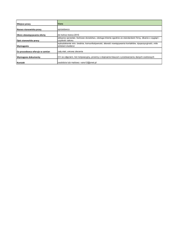 Miejsce pracy Nazwa stanowiska pracy Okres