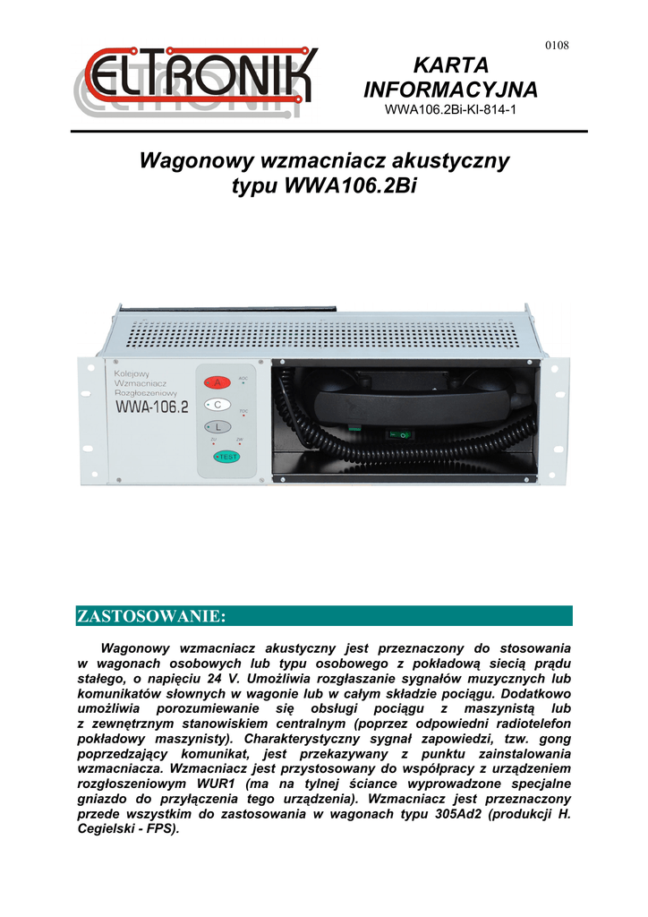 KARTA INFORMACYJNA Wagonowy wzmacniacz