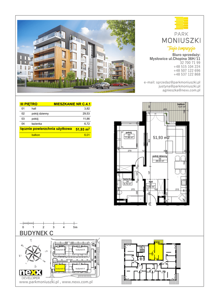 Biuro sprzedaży: Mysłowice ul.Chopina 36H/11 32 700 71 99 +48 515 104 224 +48 507 122 696 +48 537 122 868 e-mail: [email protected] [email protected] [email protected] MIESZKANIE NR C.4.1 C.4.1 02 pokój dzienny 29,53 C.4.1 03 pokój 11,86 C.4.1 04 łazienka 6,01 m2 453 40 6,72 łącznie powierzchnia użytkowa balkon C.4.1 balkon 291 190 3,82 40 hall 40 01 90 III PIĘTRO C.4.1 51,93 m2 pokój 6,01 03 11,86 m2 51,93 m2 390 279 12 400 24 529 455 502 balkon pokój dzienny P 12 127 24 127 12 761 02 29,53 m2 łazienka 24 1 2 3 4 5m BUDYNEK C NE 36 0 N 45 budynek B budynek C budynek A 315 NW 130 SE budynek D S 18 0 27 0 225 SW P-11 www.parkmoniuszki.pl , www.nexx.com.pl GSPublisherEngine 204.0.22.94 24 24 *** 0 213 232 12 ZM hall 01 3,82 m2 12 182 232 12 272 220 294 04 6,72 m2