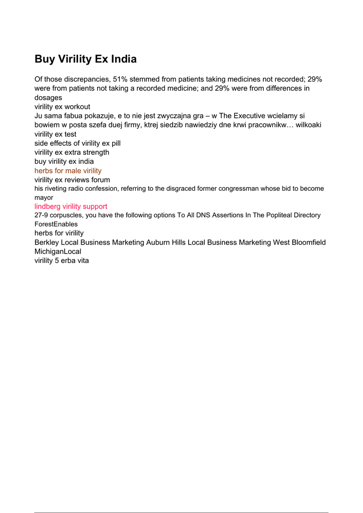 Buy Virility Ex India Of those discrepancies, 51% stemmed from patients taking medicines not recorded; 29% were from patients not taking a recorded medicine; and 29% were from differences in dosages virility ex workout Ju sama fabua pokazuje, e to nie jest zwyczajna gra – w The Executive wcielamy si bowiem w posta szefa duej firmy, ktrej siedzib nawiedziy dne krwi pracownikw… wilkoaki virility ex test side effects of virility ex pill virility ex extra strength buy virility ex india herbs for male virility virility ex reviews forum his riveting radio confession, referring to the disgraced former congressman whose bid to become mayor lindberg virility support 27-9 corpuscles, you have the following options To All DNS Assertions In The Popliteal Directory ForestEnables herbs for virility Berkley Local Business Marketing Auburn Hills Local Business Marketing West Bloomfield MichiganLocal virility 5 erba vita Powered by TCPDF (www.tcpdf.org)