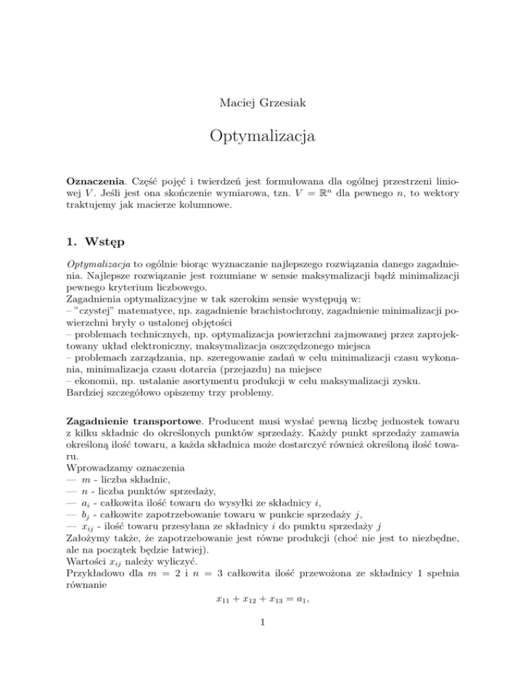 przy ograniczeniach xj 0 dla j = 1, 2, . . . , n oraz