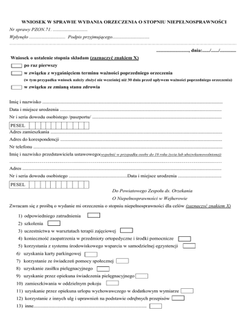 Wniosek o wydanie orzeczenia o stopniu niepełnosprawności