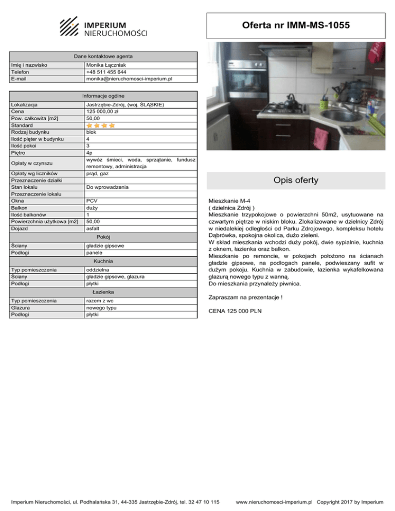 Oferta nr IMM-MS-1055 - Imperium Nieruchomości