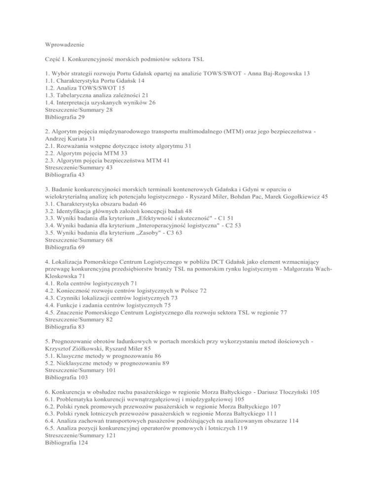 Wprowadzenie Część I. Konkurencyjność morskich