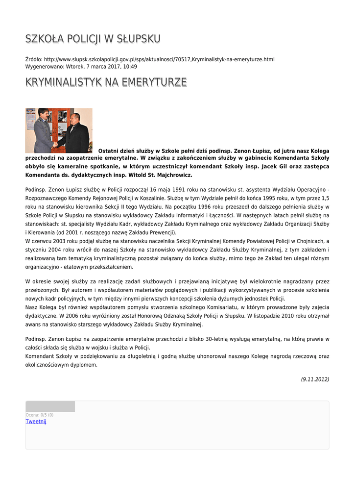 SZKOŁA POLICJI W SŁUPSKU KRYMINALISTYK NA EMERYTURZE