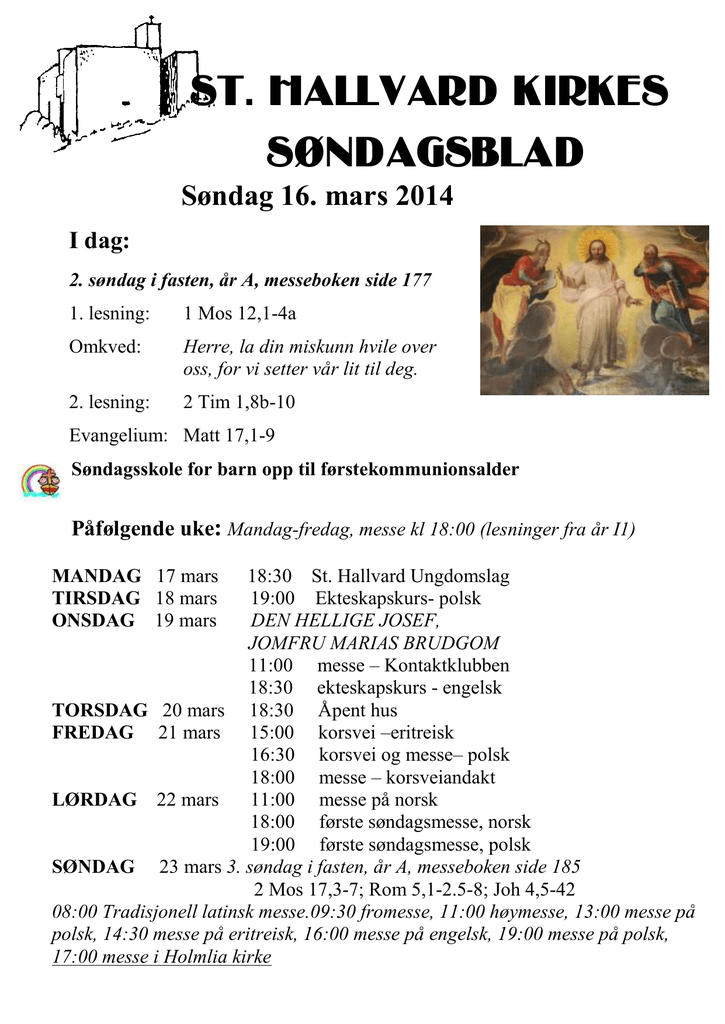 Søndagsblad for 16. mars 2014 - St Hallvard menighet