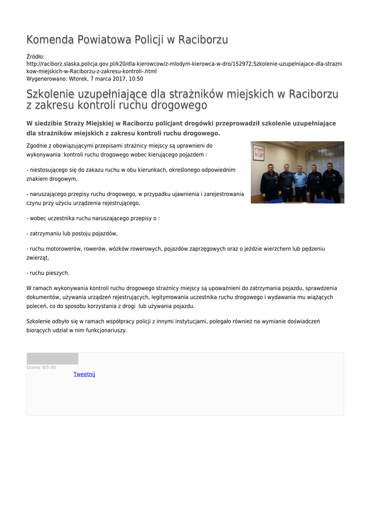 Komenda Powiatowa Policji w Raciborzu Szkolenie uzupełniające