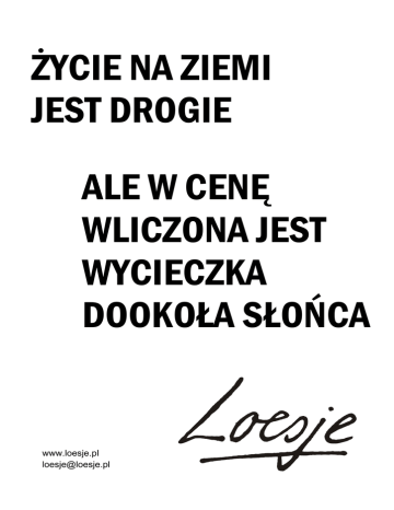 ŻYCIE NA ZIEMI JEST DROGIE ALE W CENĘ WLICZONA JEST WYCIECZKA DOOKOŁA SŁOŃCA www.loesje.pl [email protected]