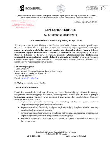 Zapytanie - Łomżyńskie Centrum Rozwoju Edukacji w Łomży