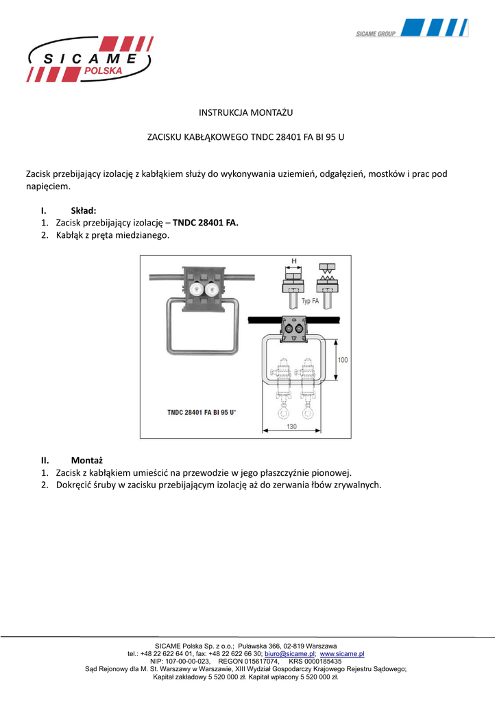 Instrukcja montażu - zacisku TNDC 28401 FA BI 95 U