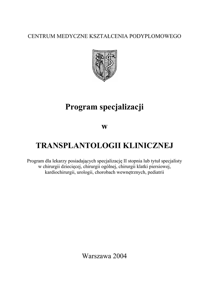 Program specjalizacji w TRANSPLANTOLOGII KLINICZNEJ