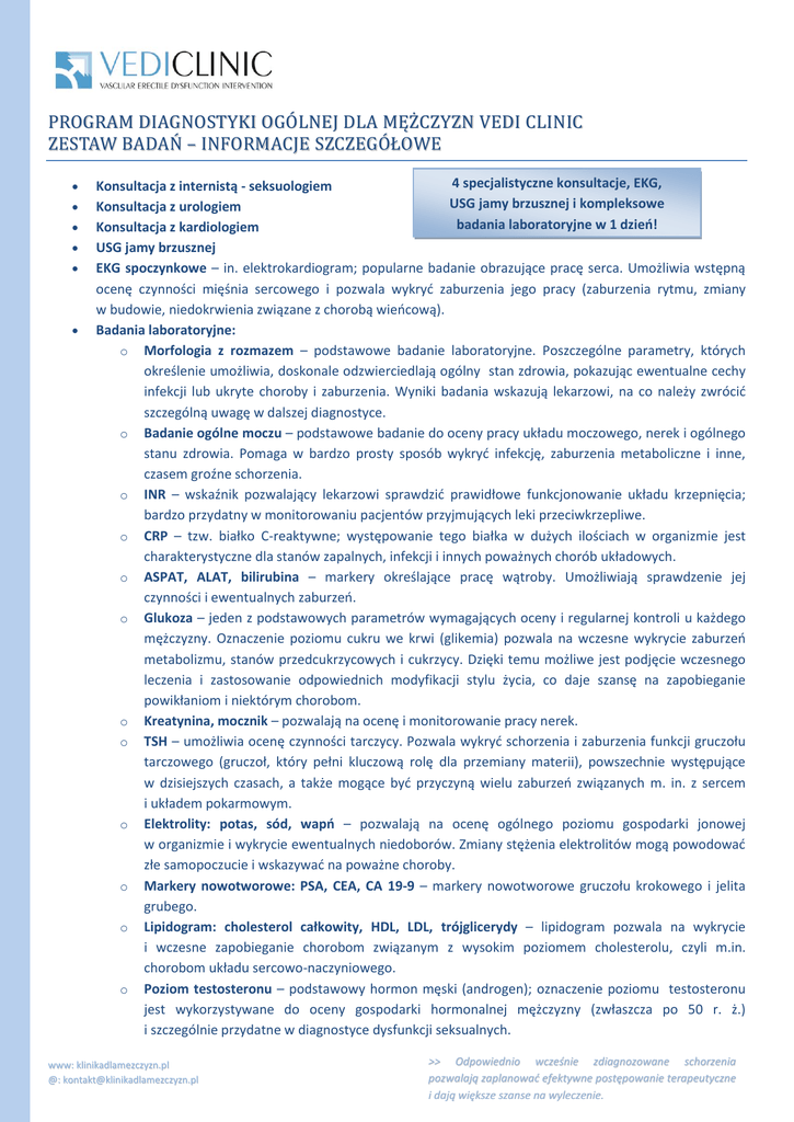 program diagnostyki ogólnej dla mężczyzn vedi clinic zestaw badań