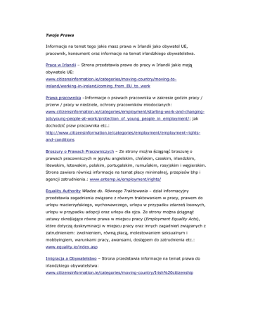 7ZRMH3UDZD ,QIRUPDFMHQDWHPDWWHJRMDNLHPDV]SUDZDZ,UODQGLLMDNRRE\ZDWHO8( SUDFRZQLNNRQVXPHQWRUD]LQIRUPDFMHQDWHPDWLUODQG]NLHJRRE\ZDWHOVWZD 3UDFDZ,UODQGLL±6WURQDSU]HGVWDZLDSUDZRGRSUDF\Z,UODQGLLMDNLHPDM RE\ZDWHOH8( ZZZFLWL]HQVLQIRUPDWLRQLHFDWHJRULHVPRYLQJFRXQWU\PRYLQJWR LUHODQGZRUNLQJLQLUHODQGFRPLQJBIURPB(8BWRBZRUN 3UDZDSUDFRZQLND±,QIRUPDFMHRSUDZDFKSUDFRZQLNDZ]DNUHVLHJRG]LQSUDF\ SU]HUZSUDF\ZQLHG]LHOHRFKURQ\SUDFRZQLNyZPáRGRFLDQ\FK ZZZFLWL]HQVLQIRUPDWLRQLHFDWHJRULHVHPSOR\PHQWVWDUWLQJZRUNDQGFKDQJLQJ MRE\RXQJSHRSOHDWZRUNSURWHFWLRQBRIB\RXQJBSHRSOHBLQBHPSOR\PHQWMDN GRFKRG]LüSUDZSUDFRZQLNDHWF KWWSZZZFLWL]HQVLQIRUPDWLRQLHFDWHJRULHVHPSOR\PHQWHPSOR\PHQWULJKWV DQGFRQGLWLRQV %URV]XU\R3UDZDFK3UDFRZQLF]\FK±=HVWURQ\PR QD FL JQ üEURV]XU R SUDZDFKSUDFRZQLF]\FKZM ]\NXDQJLHOVNLPFKL VNLPF]HVNLPLUODQG]NLP OLWHZVNLPáRWHZVNLPSROVNLPSRUWXJDOVNLPUXPX VNLPURV\MVNLPLZ JLHUVNLP 6WURQD]DZLHUDUyZQLH LQIRUPDFMHQDWHPDWSáDF\PLQLPDOQHMSU]HSLVyZEKSL DJHQFML]DWUXGQLHQLDZZZHQWHPSLHHPSOR\PHQWULJKWV (TXDOLW\$XWKRULW\:áDG]HGV5yZQHJR7UDNWRZDQLD±G]LDáLQIRUPDF\MQ\ SU]HGVWDZLD]DJDGQLHQLD]ZL ]DQH]UyZQ\PWUDNWRZDQLHPZSUDF\SUDZHPGR XUORSXPDFLHU]\ VNLHJRZ\FKRZDZF]HJRXUORSXZSU]\SDGNX]GDU]H ORVRZ\FK XUORSXZSU]\SDGNXDGRSFMLRUD]XUORSXGODRMFD=HVWURQ\PR QD FL JQ ü XVWDZ\RNUH ODM FHUyZQHSUDZDZPLHMVFXSUDF\(PSOR\PHQW(TXDOLW\$FWV NWyUHGRW\F] G\VNU\PLQDFMLZPLHMVFXSUDF\RUD]LQQ\FK]DJDGQLH ]ZL ]DQ\FK] ]DWUXGQLHQLHP]ZROQLHQLHPUyZQ SáDF PROHVWRZDQLHPVHNVXDOQ\PL PREE\LQJLHPZDUXQNDPLSUDF\DZDQVDPLGRVW SHPGR]DWUXGQLHQLDHWF ZZZHTXDOLW\LHLQGH[DVS ,PLJUDFMDD2E\ZDWHOVWZR±6WURQDSU]HGVWDZLDLQIRUPDFMHQDWHPDWSUDZDGR LUODQG]NLHJRRE\ZDWHOVWZD ZZZFLWL]HQVLQIRUPDWLRQLHFDWHJRULHVPRYLQJFRXQWU\,ULVKFLWL]HQVKLS 3UDZDLRFKURQDNRQVXPHQWD±,QIRUPDFMHQDWHPDWSUDZMDNLHPDV]MDNR NRQVXPHQWZZZFLWL]HQVLQIRUPDWLRQLHFDWHJRULHVFRQVXPHUDIIDLUVFRQVXPHU SURWHFWLRQFRQVXPHUDIIDLUVFRQVXPHUULJKWV % G ZLDGRPVZRLFKSUDZ±=HVWURQ\PR HV] FL JQ üEURV]XU LQIRUPDF\MQ GODSUDFRZQLNyZSU]\MH G DM F\FKGR,UODQGLL]NUDMyZ8(LVSR]DQLHM'RVW SQD SRDQJLHOVNXSROVNXLURV\MVNXZZZPUFLLHNQRZBULJKWVLQGH[KWP