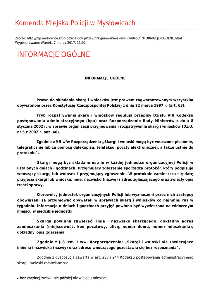 INFORMACJE OGÓLNE - Komenda Miejska Policji w Mysłowicach