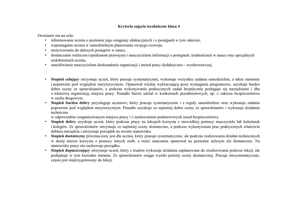 Kryteria zajęcia teczhniczne klasa 4 Ocenianie ma na celu