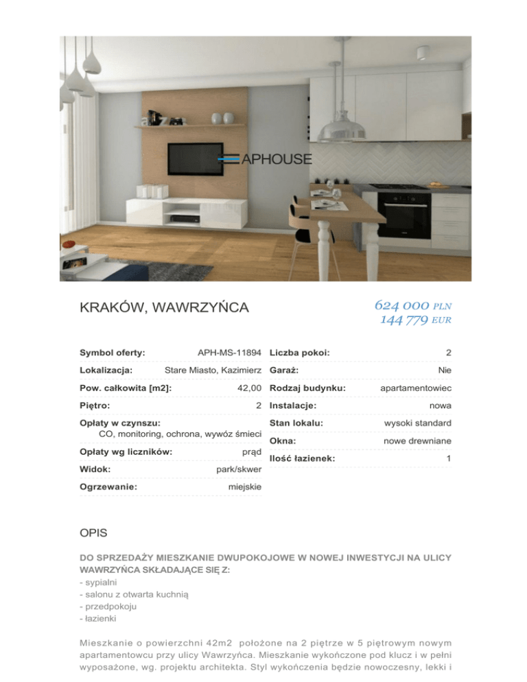 kraków, wawrzyńca 624 000 pln 141 313 eur