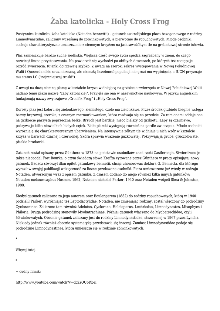 nadano temu płazu nazwę "żaby katolickiej". Przyjęła się ona w nazewnictwie naukowym. W języku angielskim