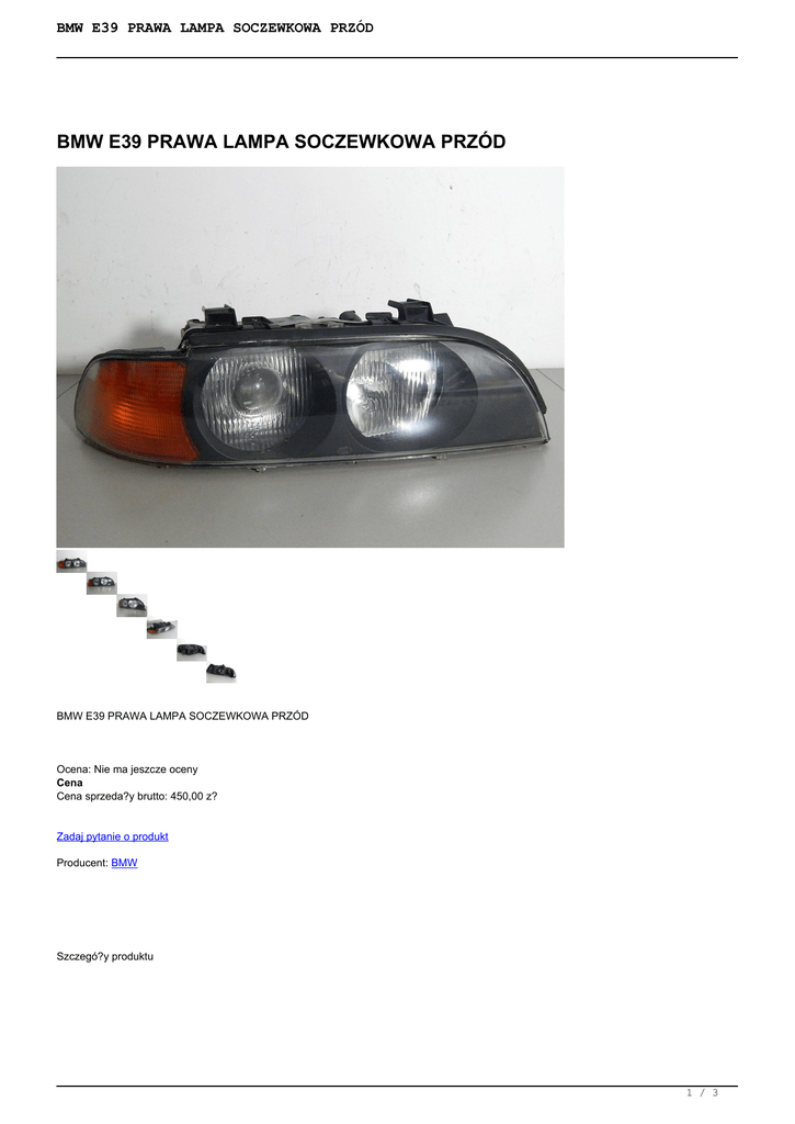 BMW E39 PRAWA LAMPA SOCZEWKOWA PRZÓD BMW E39 PRAWA LAMPA SOCZEWKOWA PRZÓD BMW E39 PRAWA LAMPA SOCZEWKOWA PRZÓD Ocena: Nie ma jeszcze oceny Cena Cena sprzeda?y brutto: 450,00 z? Zadaj pytanie o produkt Producent: BMW Szczegó?y produktu O NAS 1 / 3 BMW E39 PRAWA LAMPA SOCZEWKOWA PRZÓD Od wielu lat zajmujemy si? skupem i sprzeda?? lamp samochodowych. Posiadamy bogaty asortyment zarówno lamp u?ywanych pochodz?cych z demonta?u, jak i nowych cz??ci. Kupuj?c u nas masz pewno?? i gwarancj? rozruchow? towaru (14 dni od momentu odbioru). Istnieje mo?liwo?? zamówienia cz??ci, gdy? 2 razy w tygodniu realizowana jest nowa dostawa towaru. WYSY?KA Towar wysy?amy w tym samym dniu je?eli zamówienie zostanie z?o?one do godz.13:00 kurierem In Post lub Poczt? Polsk?. Po godz. 13:00 przesy?ka zostanie wys?ana w nast?pnym dniu roboczym. Istnieje mo?liwo?? wysy?ki paczek (forma p?atno?ci): - za pobraniem - przedp?ata na konto Przesy?ka z regu?y dociera na nast?pny dzie? roboczy. Paczki nadawane s? tylko w dni powszednie. Istnieje mo?liwo?? osobistego odbioru reflektorów po wcze?niejszej konsultacji. Maj? Pa?stwo prawo zwrotu zakupionego towaru w ci?gu 14 dni (ustawowo) wraz z dowodem zakupu i formularzem odst?pienia od umowy zawartym na naszej stronie : http://lampy-samochodowe.pl/media/files/Formularz_Odstapienia_OU.pdf bez podania przyczyny. Nie odbieramy przesy?ek za pobraniem. ZAKUP PRZEDMIOTU BMW E39 PRAWA LAMPA SOCZEWKOWA PRZÓD 1. Wybierz produkt i dodaj go do koszyka. 2. Wybierz sposób zap?aty/ odbioru, uzupe?nij dane do wysy?ki 3. Ewentualne sugestie prosz? wpisa? w polu wiadomo??. 4. Oczekuj na kuriera- sprawd? zawarto?? przesy?ki przy odbiorze (wszystkie paczki s? ubezpieczone) . MODEL STRON OPIS STAN CENA /MARK A CZ??CI MAGA A ZYNO WY BMW PRAWA PRZÓD , 21b-10 450,00 E39 SOCZEW 1 PLN PRZED KA, KOM LIFTEM PLETNA, ORYGIN A?, WERSJA EUROPE JSKA, K OMPLET NA, HELLA U CHWYTY CA?E, + USZCZE LKA, OP RAWKI, SILNICZ EK, NOWA S OCZEW KALAMPA ?WIECI JAK NOWA, NOWE R 2 / 3 BMW E39 PRAWA LAMPA SOCZEWKOWA PRZÓD EGULAT ORY PARAGON/FAKTURA Do ka?dej zakupionej cz??ci do??czamy paragon . Je?li ?ycz? Pa?stwo sobie faktur?, prosimy o informacj? wraz z danymi niezb?dnymi do jej wystawienia. KONTAKT: Wszelkie zapytania prosimy kierowa? na e-mail: [email protected] Wszystkie przedmioty s? dok?adnie opisane i skatalogowane. Je?li masz dodatkowe pytania prosimy o kontakt pod nr tel.: 798-986-497 GODZINY OTWARCIA: Pracujemy od poniedzia?ku do pi?tku w godz. 8:00- 16:00. STRONA WWW: www.lampy-samochodowe.pl ZAMIENNIKI: Nie kupuj zamienników na innych aukcjach. S? to cz??ci o krótkiej ?ywotno?ci i s?abej jako?ci wykonania. Pos?u?? na zdecydowanie krótszy czas ni? cz??ci oryginalne, mimo, ?e s? nowe. Zakup na naszych aukcjach jest jednoznaczny z akceptacj? regulaminu dost?pnego na naszej stronie. DZI?KUJEMY ZA ZAINTERESOWANIE 3 / 3 Powered by TCPDF (www.tcpdf.org)