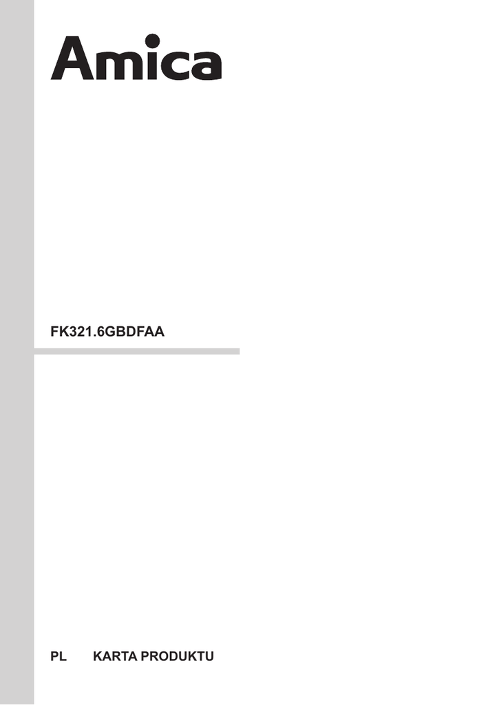 FK321.6GBDFAA PL KARTA PRODUKTU KARTA PRODUKTU Amica Wronki S.A. PL Nazwa dostawcy FK321.6GBDFAA Identyfikator modelu (Model) 7 Kategoria modelu urządzenia chłodniczego1 Klasa efektywności energetycznej2 A++ Roczne zużycie energii elektrycznej [kWh/rok]3 274 Pojemność użytkowa netto chłodziarki [l] 220 Pojemność użytkowa netto zamrażarki [l] 81 Oznaczenie gwiazdkowe komór zamrażania4 */*** System bezszronowy √ Czas wzrostu temperatury [h]5 21 Zdolność zamrażania [kg/24h] 5 Klasa klimatyczna6 ST Poziom emitowanego hałasu [dB(A) re1 pW] 42 Model jest przeznaczony do zabudowy - Napięcie [V / Hz] 220-240 V / 50Hz Wys. x szer. x głęb. wyrobu [mm] 1855 x 595 x 638 Masa urządzenia [kg] 72 Rodzaj oświetlenia (Żarowe / LED / brak) O/V/O Możliwa wymiana żarówki (tak - V / nie - O) 1) 2) 3) 4) 5) 6) O 1- Chłodziarka z co najmniej jedną komorą do przechowywania świeżej żywności; 3- Chłodziarko- schładzarka i chłodziarka z komorą bezgwiazdkową; 4- Chłodziarka z komorą jednogwiazdkową; 5- Chłodziarka z komorą dwugwiazdkową; 6- Chłodziarka z komorą trzygwiazdkową; 7- Chłodziarko- zamrażarka; 8- Zamrażarka szafowa; 9- Zamrażarka skrzyniowa. Ocena A++/A+ (=zużycie niskie) do G (=zużycie wysokie). Zużycie energii »XYZ« kWh rocznie na podstawie wyników testu przeprowadzonego w normalnych warunkach w cyklu 24 godzinnym. Rzeczywiste zużycie energii zależy od sposobu użytkowania urządzenia i miejsca, w którym się ono znajduje (*) = przestrzeń do przechowywania produktów w temp. ok. -6°C (**) = przestrzeń do przechowywania produktów w temp. ok. -12°C (***) = przestrzeń do przechowywania mrożonek w temp. ok. -18°C (*/***) = przestrzeń do zamrażania produktów w temp. -18°C lub niższej. bezpieczny czas przechowywania »X« godzin bez zasilania Klasa klimatyczna: W [klasa klimatyczna]. Urządzenie przeznaczone do użytku w temperaturze otoczenia od X [dolna granica] °C do Y [górna granica] °C. SN - od +10°C do +32°C; N - od +16°C do +32°C; ST - od +16°C do +38°C; T - od +16°C do +43°C. 2 3 Amica Wronki S.A. ul.Mickiewicza 52 64-510 Wronki tel. 67 25 46 100 fax 67 25 40 320 www.amica.com.pl PF-REF-0053 (04.2015)