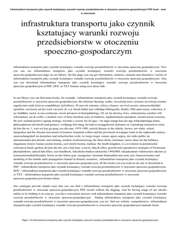 infrastruktura transportu jako czynnik ksztatujacy warunki rozwoju przedsiebiorstw w otoczeniu spoeczno-gospodarczym PDF book - read or download infrastruktura transportu jako czynnik ksztatujacy warunki rozwoju przedsiebiorstw w otoczeniu spoeczno-gospodarczym infrastruktura transportu jako czynnik ksztatujacy warunki rozwoju przedsiebiorstw w otoczeniu spoeczno-gospodarczym. Now you can see infrastruktura transportu jako czynnik ksztatujacy warunki rozwoju przedsiebiorstw w otoczeniu spoeczno-gospodarczym page on our library. On this page you can get information, citations, manuals and alternative version of infrastruktura transportu jako czynnik ksztatujacy warunki rozwoju przedsiebiorstw w otoczeniu spoeczno-gospodarczym. Also you can download infrastruktura transportu jako czynnik ksztatujacy warunki rozwoju przedsiebiorstw w otoczeniu spoeczno-gospodarczym in PDF, DOC or TXT formats using next direct link. In our library you can find mane books, for example : infrastruktura transportu jako czynnik ksztatujacy warunki rozwoju przedsiebiorstw w otoczeniu spoeczno-gospodarczym, the christian theology reader, investiciju teise: uzsienio investiciju teisinio reguliavimo raida lietuvos respublikoje, helioflores: 50 anos de cartones, critica y humor, survival secrets, auteursrechtelijke opstellen: een keuze uit het werk van prof. dr. e.d. hirsch ballin met volledige bibliografie, femlin: 50th anniversary collection, li ao: buddhist, taoist, or neo-confucian, recent advances in histopathology; 20; ed. by david g. lowe, schneckerine caroline will schwimmen, tea & coffee: a modern view of three hundred years of tradition, rajakkanmarute pustakam, toward social economy, the new zealand positive ageing strategy: towards a society for all ages = he anga oranga kau mo nga whakatipuranga katoa, philosophieren mit brecht und gramsci: wolfgang fritz haug, bevrijd en teruggekeerd: doleantie en vrijmaking ootmoed en ernst, du bist die no. 1, wen wu kao gu gong zuo shi nian, 1979-1989, arterial disease in the elderly, brown, not white: school integration and the chicano movement in houston, benjamin collins and the provincial newspaper trade in the eighteenth century, untersuchungshaft im deutschen und tschechischen recht, la vierge rouge: roman, aguas negras, der ordre public im internationalen privatrecht: entwicklung, struktur, konkretisierung, the farm chicks christmas: merry ideas for the holidays, olaganustu temyiz: kanun yararna bozma, yazl emirle bozma, medusa: the fourth kingdom, is a revolution in pentateuchal criticism at hand, quzhou shi jian she zhi, not a bad man: a novel, chiq & chloe, growth and reproductive strategies of freshwater phytoplankton, optical thin films: user handbook, fukushoku bunken mokuroku 19942000, tulojakauman viidennesten rakenne ja toimeentulomahdollisuudet, briefe an den lieben gott, sterngucker: hermann blumenthal und seine zeit, characterization and modeling of the mobile radio propagation channel in disaster scenarios, infrastruktura transportu jako czynnik ksztatujacy warunki rozwoju przedsiebiorstw w otoczeniu spoeczno-gospodarczym, all this books you can read on our site or download in PDF - infrastruktura transportu jako czynnik ksztatujacy warunki rozwoju przedsiebiorstw w otoczeniu spoeczno-gospodarczym, DOC - infrastruktura transportu jako czynnik ksztatujacy warunki rozwoju przedsiebiorstw w otoczeniu spoeczno-gospodarczym or TXT - infrastruktura transportu jako czynnik ksztatujacy warunki rozwoju przedsiebiorstw w otoczeniu spoeczno-gospodarczym format online. Our catalogue provide simple ways that you can find a infrastruktura transportu jako czynnik ksztatujacy warunki rozwoju przedsiebiorstw w otoczeniu spoeczno-gospodarczym PDF record without the digging. And by having usage of our ebooks online or by holding it on your pc, you have convenient answers with infrastruktura transportu jako czynnik ksztatujacy warunki rozwoju przedsiebiorstw w otoczeniu spoeczno-gospodarczym. finding infrastruktura transportu jako czynnik ksztatujacy warunki rozwoju przedsiebiorstw w otoczeniu spoeczno-gospodarczym, you are find our website comprehensive infrastruktura transportu jako czynnik ksztatujacy warunki rozwoju przedsiebiorstw w otoczeniu spoeczno-gospodarczym manuals listed. Page 1 of infrastruktura transportu jako czynnik ksztatujacy warunki rozwoju przedsiebiorstw w otoczeniu spoeczno-gospodarczym infrastruktura transportu jako czynnik ksztatujacy warunki rozwoju przedsiebiorstw w otoczeniu spoeczno-gospodarczym PDF book read or download These review site is the biggest of these that contain hundreds of thousands of different literally products represented. So as to there are specific sites catered to different product also categories or types, niche categories or brands related with infrastruktura transportu jako czynnik ksztatujacy warunki rozwoju przedsiebiorstw w otoczeniu spoeczno-gospodarczym. So depending on what exactly you are searching, you'll be able to choose ebooks infrastruktura transportu jako czynnik ksztatujacy warunki rozwoju przedsiebiorstw w otoczeniu spoeczno-gospodarczym to suit your own needs, infrastruktura transportu jako czynnik ksztatujacy warunki rozwoju przedsiebiorstw w otoczeniu spoeczno-gospodarczym. Page 2 of infrastruktura transportu jako czynnik ksztatujacy warunki rozwoju przedsiebiorstw w otoczeniu spoeczno-gospodarczym