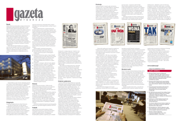 Promocja Gazeta powstała w czasach, gdy mechanizmy wolnego rynku, w tym także działania o charakterze marketingowym, dopiero się w Polsce rodziły. Swoją markę Gazeta budowała głównie poprzez zaangażowanie w problemy transformacji ustrojowej (od słynnego artykułu Adama Michnika „Wasz prezydent, nasz premier”), a także projekty dobroczynne i społeczne (np. akcja „Rodzić po ludzku”, która radykalnie zmieniła polskie szpitale). Było to zgodne z rodowodem Gazety i wartościami wyznawanymi przez jej twórców. Rynek Gazeta Wyborcza od początku swojego istnienia była największym opiniotwórczym dziennikiem w kraju. Obecnie średnia dzienna sprzedaż Gazety wynosi 435 tys. egzemplarzy, tj. ponad 16% udziału w średnim rozpowszechnianiu płatnych dzienników w Polsce. Dziś w Polsce ukazują się 44 dzienniki płatne, w tym 12 tytułów ogólnopolskich (2 z nich to gazety bulwarowe) oraz 32 tytuły lokalne. Wydawane są także 3 dzienniki bezpłatne rozpowszechniane w największych miastach Polski. Główni wydawcy na rynku dzienników to: Agora (wydawca Gazety Wyborczej i Metra), Axel Springer (wydawca Faktu), Orkla (wydawca 12 tytułów lokalnych i współwłaściciel Rzeczpospolitej), Polskapresse (wydawca 9 tytułów regionalnych). Około 66% dorosłych Polaków raz w tygodniu czyta co najmniej jeden dziennik. Po Gazetę Wyborczą sięga 19%, czyli 5,7 mln osób. Wśród osób ze średnim i wyższym wykształceniem Gazetę czyta 28%, tj. o jedną czwartą więcej od następnego tytułu na rynku. Gazeta Wyborcza jest również najbardziej popularnym tytułem wśród reklamodawców. Udział Gazety w szacowanych na 614 mln złotych wydatkach reklamowych we wszystkich dziennikach wynosi 43% (drugi co do wielkości przychodów reklamowych dziennik ma około 10% udziału). Silną pozycję na rynku reklamowym Gazeta zawdzięcza atrakcyjnej i rozbudowanej ofercie reklamowej, która dzięki wyjątkowej krajowo-lokalnej strukturze dziennika pozwala klientom elastycznie dostosować zasięg reklam do odpowiedniej grupy odbiorców. (Źródła danych rynkowych: ZKDP, I-X 2004 r.; PBC General, SMG/KRC A Millward Brown Company, wskaźnik CCS, I-IX 2004 r., N=27177; szacunki Agory SA na podst. Agora Monitoring, I-IX 2004 r.) Osiągnięcia Gwarancją niezależności jest sukces finansowy. Od wielu lat Gazeta jest nie tylko jednym z najbardziej opiniotwórczych mediów w Polsce i w Europie, ale także bardzo rentownym i sprawnie zarządzanym przedsięwzięciem biznesowym. W ciągu ostatnich kilkunastu lat, mimo narastającej konkurencji na rynku mediów w Polsce, Gazeta wyrosła na duże, liczące się przedsiębiorstwo. Mimo głębokiej recesji na rynku reklamy, a także ogromnej konkurencji wśród dzienników, Gazeta sprzedaje coraz więcej egzemplarzy i zyskuje nowych czytelników. Dobre wyniki finansowe i wypracowana przez lata silna pozycja rynkowa sprawiają, że Gazeta może w pełni realizować swoją misję poprzez formułowanie całkowicie niezależnych sądów i opinii. Dziennikarze i redaktorzy Gazety wyznaczają standardy profesjonalizmu i doskonałości dziennikarskiej w Polsce. Z drugiej strony rentowność biznesowa Gazety pozwala jej aktywnie podchodzić do nowości technologicznych i stale podnosić jakość wydawniczą. Profesjonalizm i jakość Gazety doceniają również konkurenci. W badaniach prowadzonych na zlecenie Instytutu Monitoringu Mediów Gazeta od długiego czasu niezmiennie utrzymuje jeden z najwyższych wśród mediów drukowanych wskaźnik cytowanych tekstów. Wśród nagród i wyróżnień przyznanych Gazecie i jej zespołowi wymienić należy m.in.: tytuł Gazety Roku 2004 przyznany podczas kongresu World Association of Newspapers w Stambule; dwukrotne członkostwo Agory i Agory Poligrafii w Międzynarodowym Klubie Jakości Koloru Gazet (International Newspaper Color Quality Club); nagrody w konkursie Izby Wydawców Prasy na Prasową Okładkę Roku GrandFront w latach 2002 i 2003; AS EMPiK-u w kategorii „dziennik”, jako najlepiej sprzedający się tytuł w salonach w całej Polsce; tytuł Mecenasa Kultury 2001 za całokształt działalności patronackiej w dziedzinie kultury; zakwalifikowanie do Złotej Dziesiątki rankingu Polska Marka Roku przygotowanego przez miesięcznik Businessman Magazine w 2002 roku; liczne nagrody i wyróżnienia przyznawane dziennikarzom i fotografikom Gazety, w tym m.in. przez Stowarzyszenie Dziennikarzy Polskich (SDP), Business Centre Club, miesięcznik Press najlepszym dziennikarzom roku, międzynarodową Nagrodę Dziennikarską im. Kurta Schorka za dziennikarstwo śledcze, a także w Konkursie Polskiej Fotografii Prasowej. Historia Gazeta Wyborcza powstała w 1989 roku jako platforma pierwszych demokratycznych wyborów do parlamentu. Redakcja Gazety wywodziła się w znacznej części spośród osób, które wydawały podziemny Tygodnik Mazowsze. Pierwszy numer Gazety Wyborczej, który ukazał się 8 maja 1989 roku w nakładzie 150 tys. egzemplarzy, liczył 8 stron. Numer zawierał głównie listę i profile kandydatów do parlamentu, którzy startowali z ramienia Komitetu Obywatelskiego przy Lechu Wałęsie. Pod koniec 1990 roku średni nakład Gazety wzrósł do około 500 tys. egzemplarzy, dzięki czemu stała się ona dziennikiem o największym nakładzie w Polsce. Do dziś jest najchętniej kupowaną poważną gazetą codzienną, a jej średnia objętość przekracza 100 stron. Produkt Jako dziennik równocześnie krajowy i lokalny Gazeta jest fenomenem w skali światowej. Razem z wydaniem ogólnopolskim ukazują się strony lokalne, przygotowywane w 20 redakcjach. Ponadto główny grzbiet uzupełniany jest o dodatki tematyczne o zasięgu krajowym i lokalnym oraz wkładki okazjonalne. W określone dni tygodnia wraz z Gazetą publikowane są: magazyn dla kobiet, magazyn dla mężczyzn, Gazeta Telewizyjna i magazyn turystyczny. Systematycznie wydawane są też branżowe dodatki tematyczne, istotne z punktu