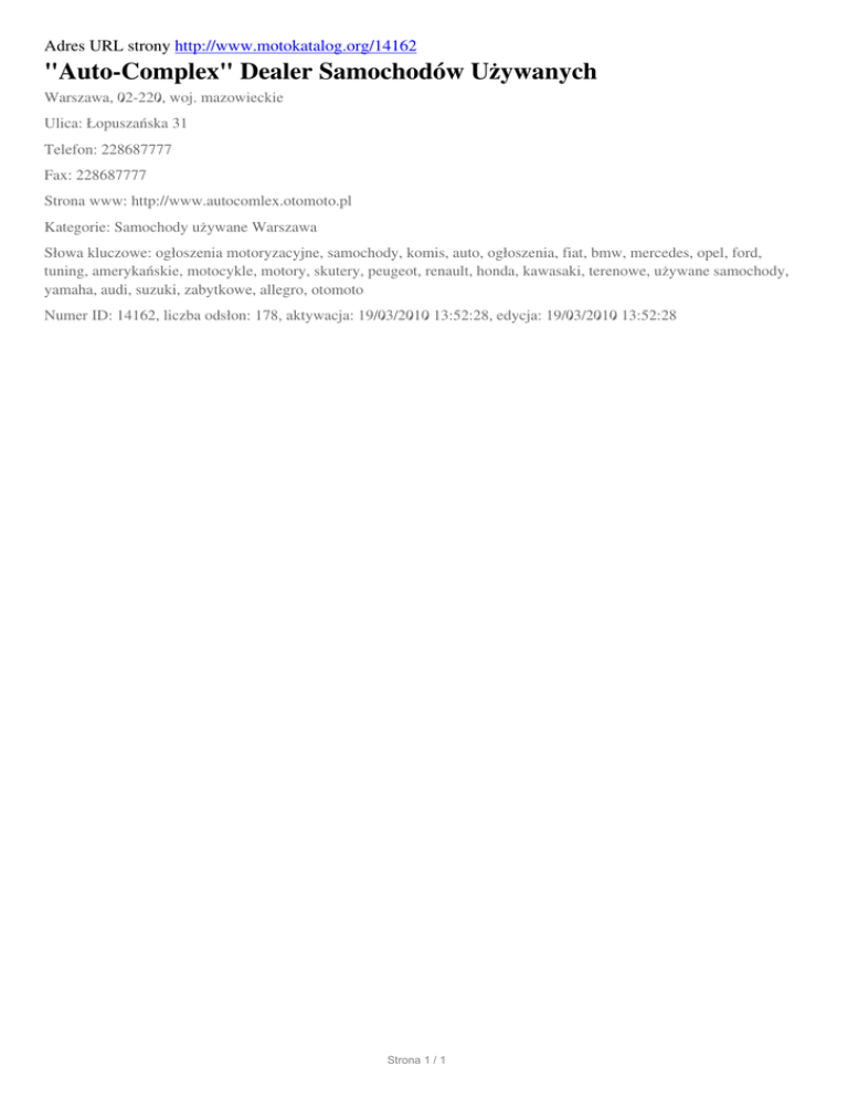"Auto-Complex" Dealer Samochodow Uzywanych, Warszawa