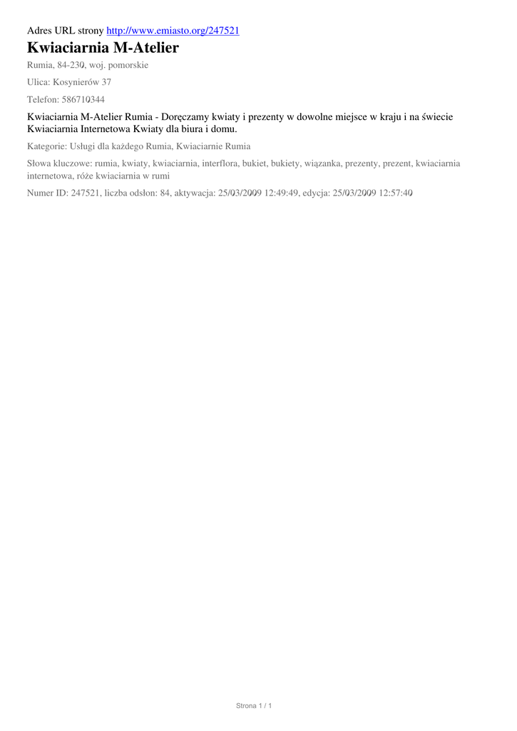 Kwiaciarnia M-Atelier, Rumia, Kosynierow 37