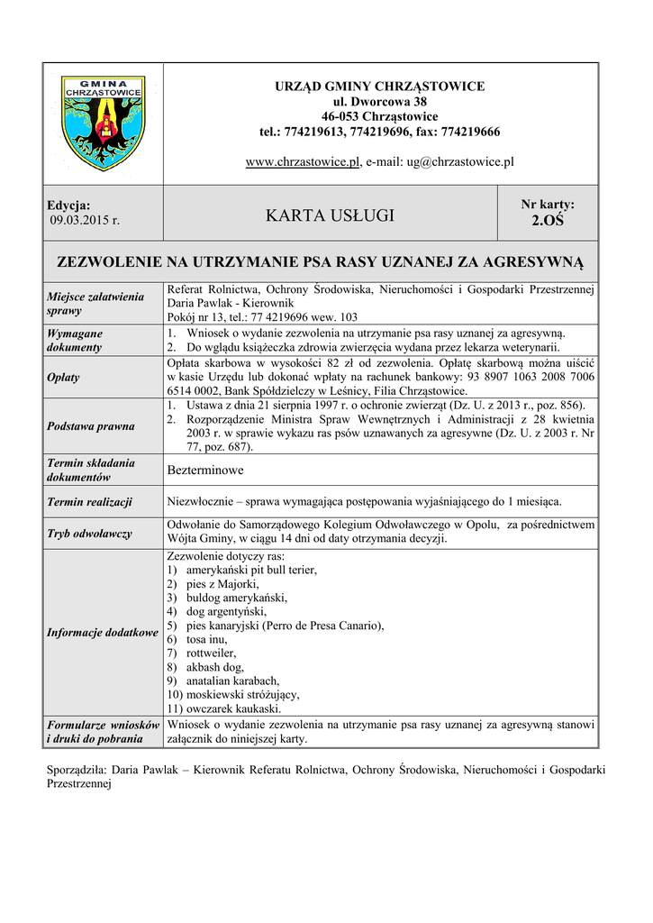 Karta usługi nr 2.OŚ - Urząd Gminy Chrząstowice