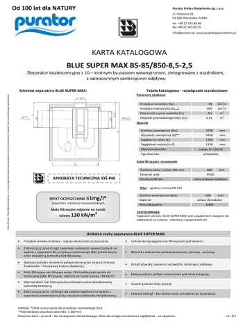 KARTA KATALOGOWA BLUE SUPER MAX BS-85/850-8,5-2,5