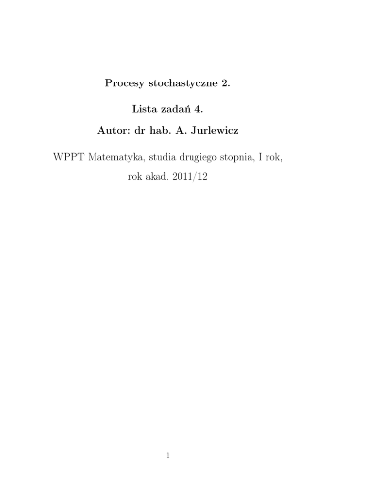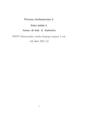 Procesy stochastyczne 2. Lista zadań 4. Autor: dr hab. A. Jurlewicz