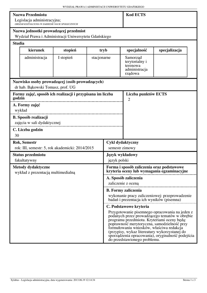 Legislacja administracyjna - Wydział Prawa i Administracji