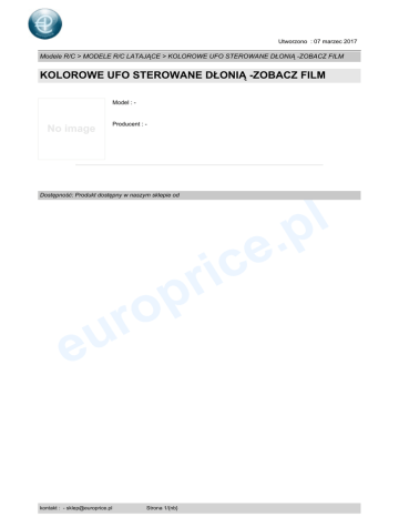 Utworzono : 07 marzec 2017 Modele R/C > MODELE R/C LATAJĄCE > KOLOROWE UFO STEROWANE DŁONIĄ -ZOBACZ FILM KOLOROWE UFO STEROWANE DŁONIĄ -ZOBACZ FILM Model : - No image Producent : - l .p Dostępność: Produkt dostępny w naszym sklepie od o r u e kontakt : - [email protected] r p e ic Strona 1/{nb}